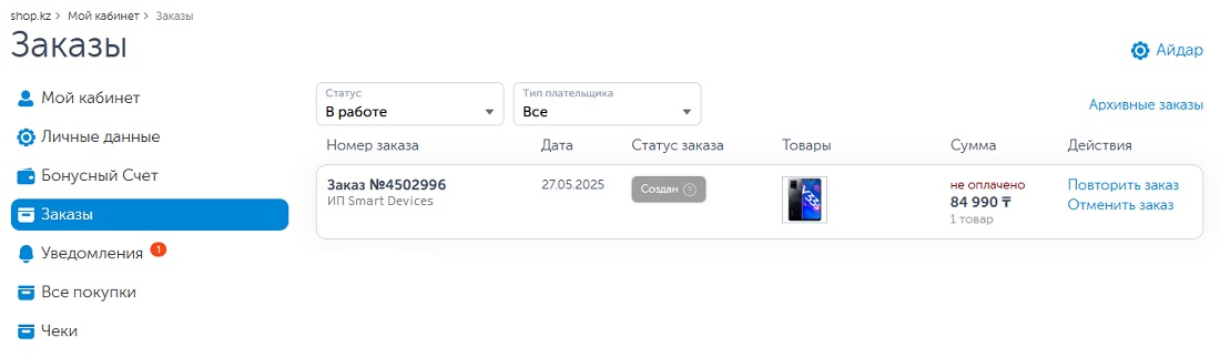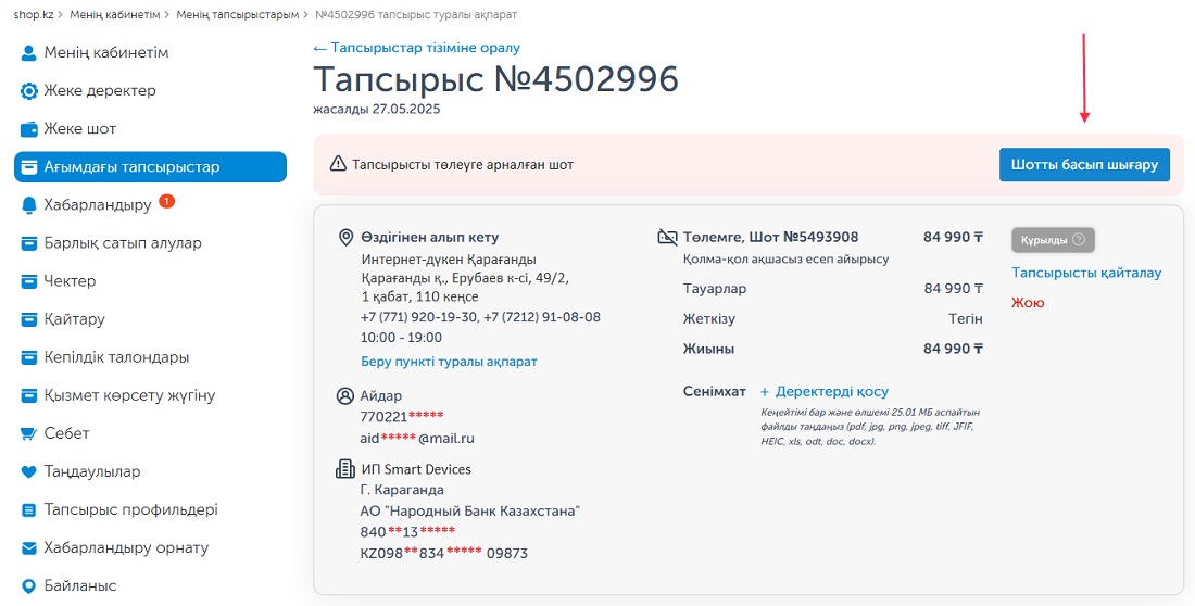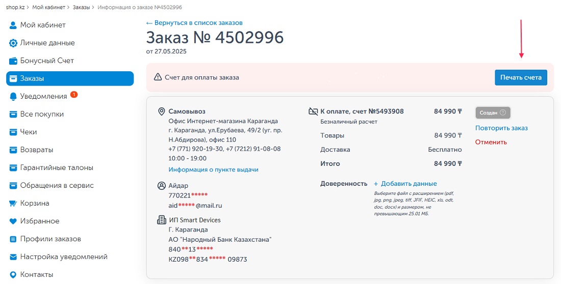 После установки статуса «Ожидает оплаты», на ваш email будет отправлен счет на оплату, его также можно распечатать из личного кабинета. Товар резервируется на 3 (три) календарных дня. При отсутствии оплаты вам может быть выставлен новый счет по актуальным ценам.