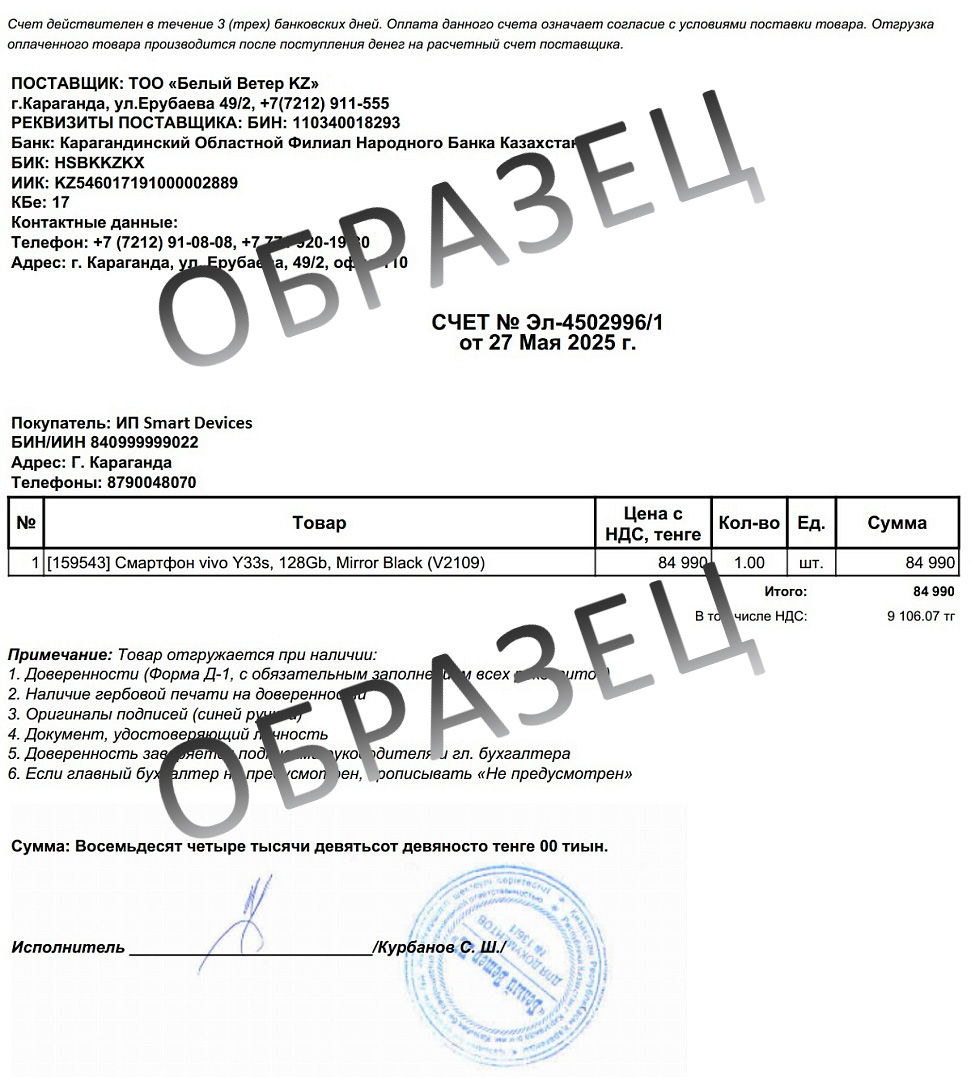 Отгрузка товара осуществляется после поступления полной стоимости заказа на расчетный счет. Для получения товара