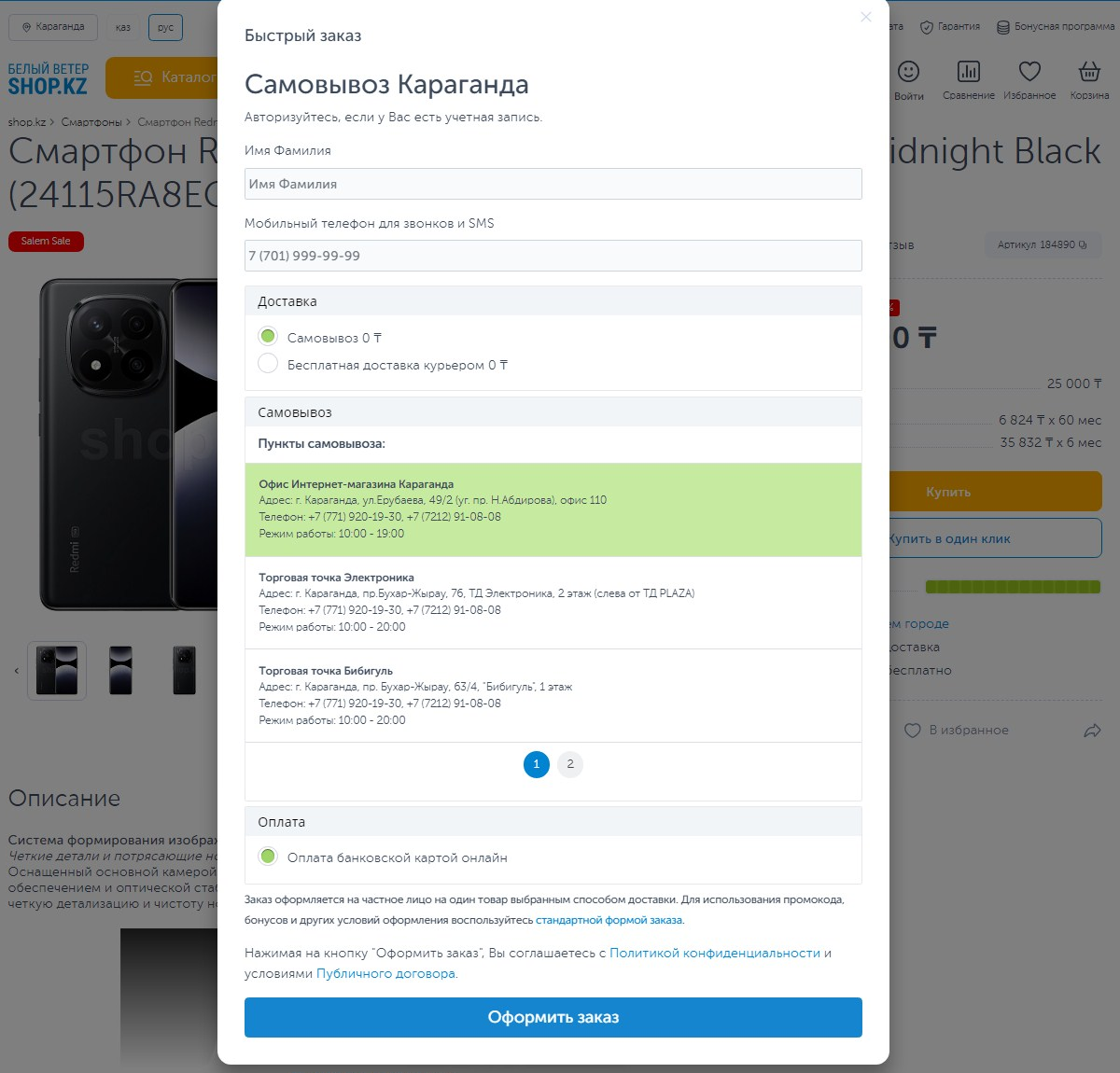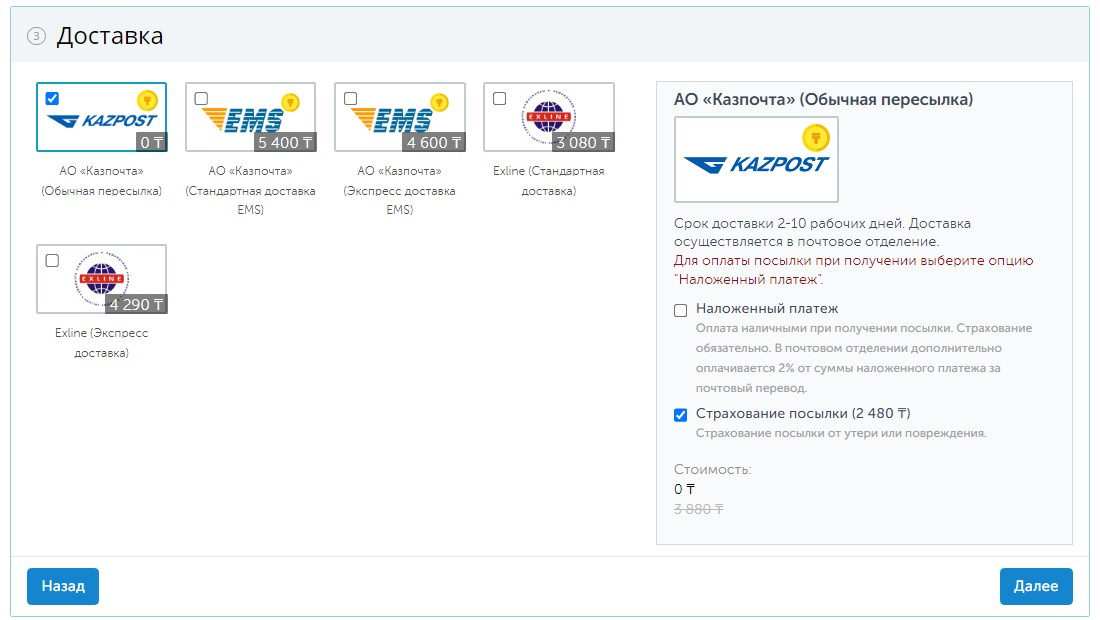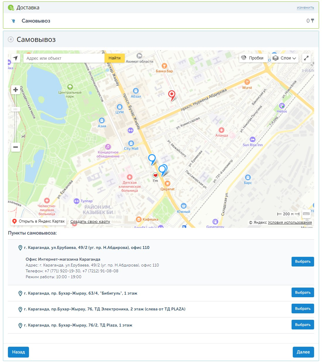 Примечание: жители городов Алматы, Астана, Актобе, Караганда, Павлодар, Костанай, Темиртау, Жезказган, Рудный, Тараз, Шымкент, Атырау, Туркестан, Усть-Каменогороск могут забрать свой заказ самовывозом. Адреса пунктов самовывоза вы найдете здесь.