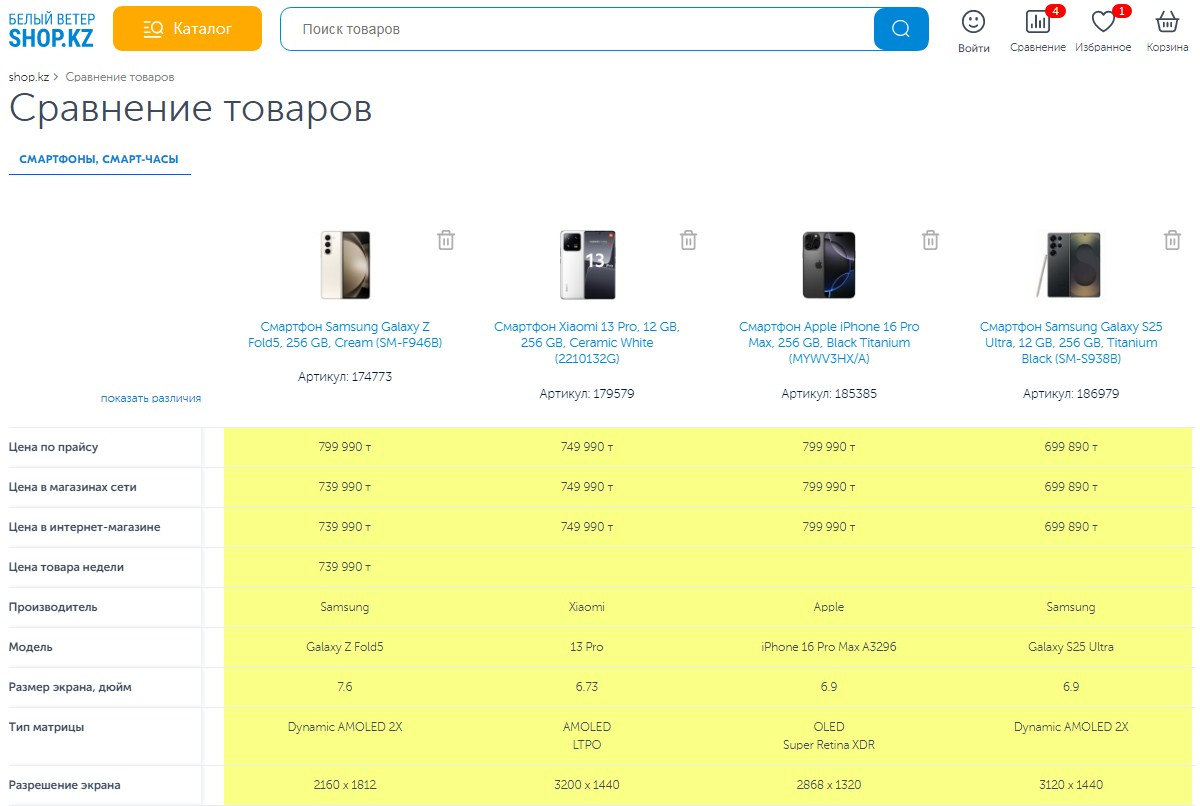 Не знаете, что лучше? Чтобы выбрать товары для сравнения, нажмите на значок «Сравнение». Перейдите в раздел сравнения, кликнув на значок «Сравнение» в шапке сайта, и посмотрите все сходства и отличия: