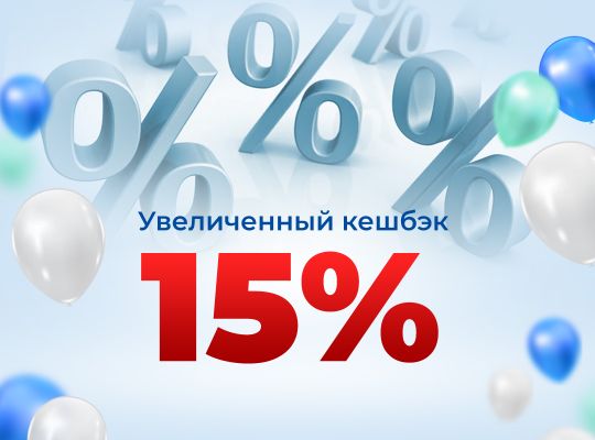 В честь открытия получайте увеличенный кешбэк в размере 15% на товары без скидки!