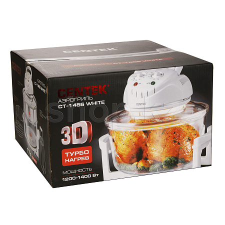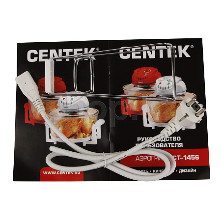 Аэрогриль Centek CT-1456 мощностью 1400 Вт имеет систему 3D-турбонагрева. Объем чаши – 17 литров, такого объема достаточно для приготовления еды на всю семью. Для приготовления блюд не требуется добавление масла или жира. Прибор оснащен таймером до 90 минут. Для регулирования температурного режима воспользуйтесь терморегулятором с максимальной температурой разогрева до 250 градусов.