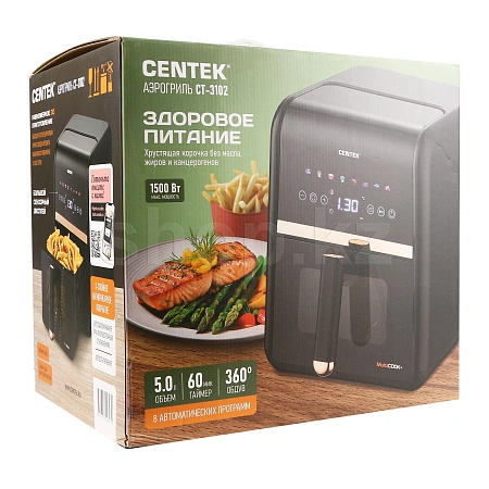Широкий диапазон температур и таймер до 60 минут дают точный контроль над процессом приготовления. Аэрогриль CT-3102 сочетает в себе современный дизайн, функциональность и удобство эксплуатации, делая его универсальным помощником на каждый день.