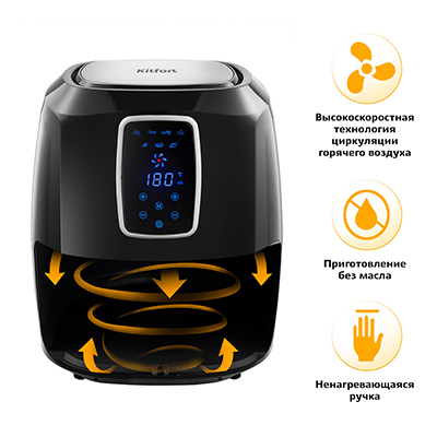 Аэрогриль Kitfort KT-2208 оснащён вместительной корзиной на 5.2 л. Вдвое больше блюд - больше радости!