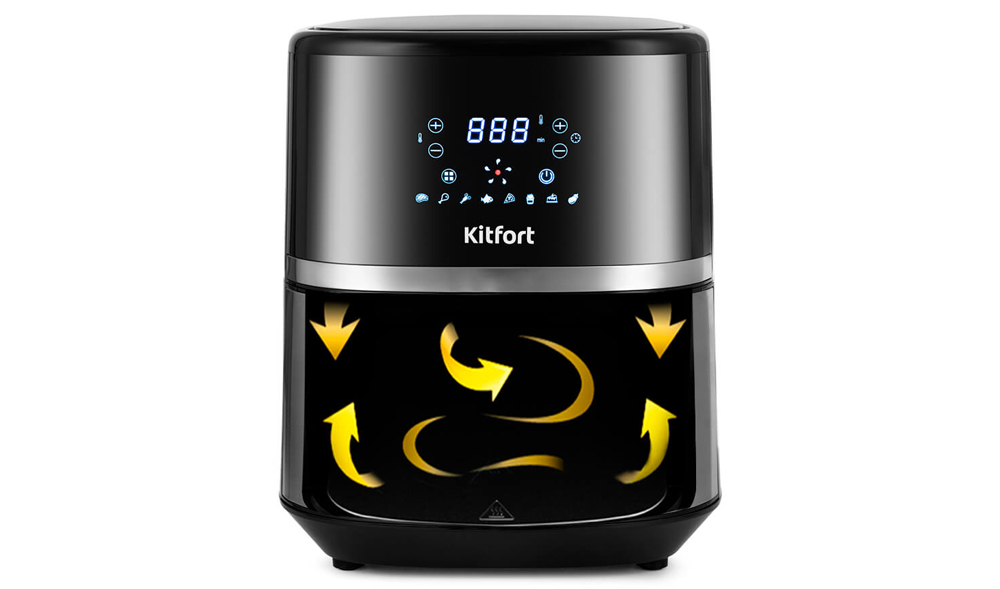 Аэрогриль Kitfort КТ-2221 может использоваться как аэрогриль, а также как аэрофритюрница и духовка и позволяет готовить большинство продуктов с минимальным количеством масла или вовсе без его добавления.