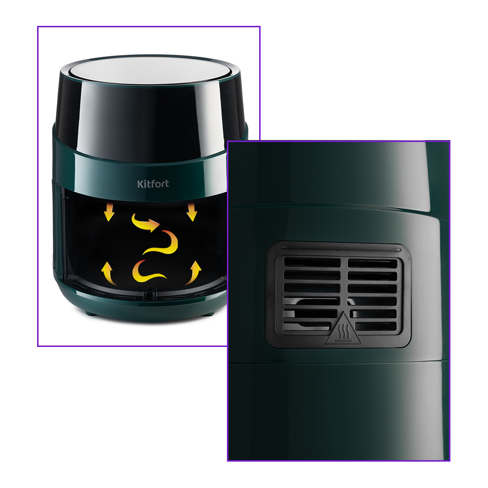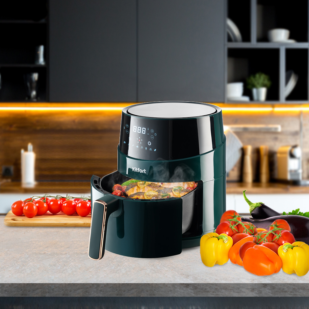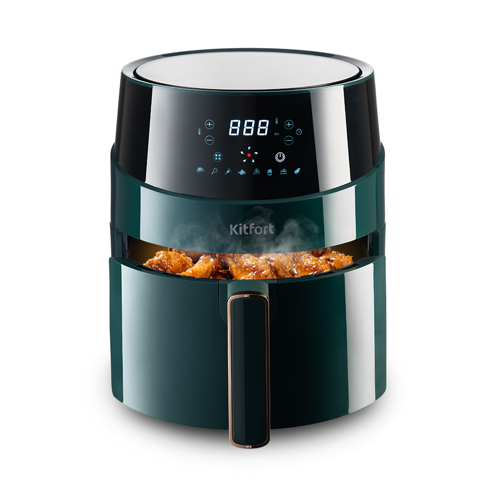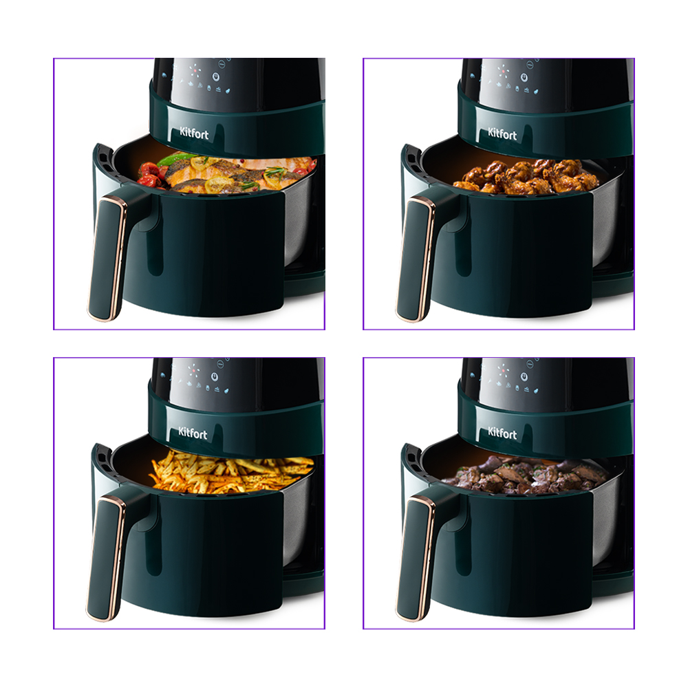 Современный аэрогриль Kitfort КТ-2222 может использоваться как аэрогриль, а также как аэрофритюрница и духовка и позволяет готовить большинство продуктов с минимальным количеством масла или вовсе без его добавления.
