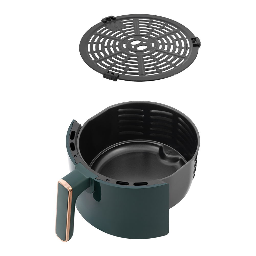 Продукты готовятся в специальной корзине, которая вставлена в поддон. Благодаря системе циркуляции горячего воздуха, продукты обжариваются равномерно со всех сторон, получаясь нежными внутри и с хрустящей корочкой снаружи.