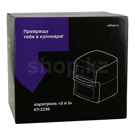 Стильный, большой и мощный аэрогриль Kitfort КТ-2236 является универсальным устройством, и совмещает в себе функции аэрофритюрницы, духовки, шашлычницы или даже сушилки для овощей и фруктов!