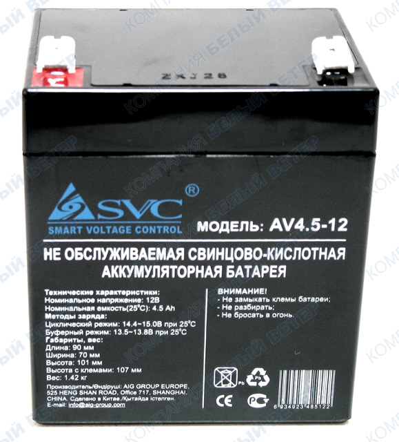 Аккумулятор для ИБП SVC AV4.5-12, 4.5Ah/12V