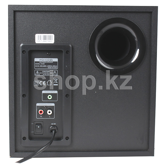 Фазоинвертор сабвуфера выведен на заднюю панель. Там же расположена кнопка включения/выключения акустики.