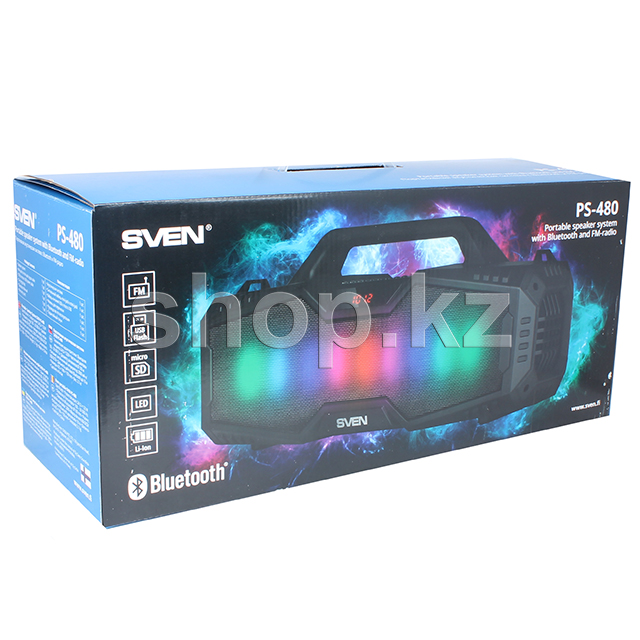 Колонка отлично подойдет для веселого праздника на природе: суммарная мощность динамиков 24 Вт позволяет им выдавать громкий звук, пассивные излучатели обеспечивают глубокий бас. А по-настоящему веселой и зажигательной вашу вечеринку сделает встроенная в PS-480 светодиодная подсветка. Ее яркие цвета переключаются в трех режимах в такт звучанию – настоящая светомузыка! Акустику удобно носить с собой на специальном ремне, который входит в комплект поставки. К ней можно подключиться по Bluetooth или с помощью кабеля. Также можно вставить флешку или карточку microSD с любимой музыкой, или послушать радио. Все настройки отображаются на LED дисплее, так что управлять колонкой очень удобно.