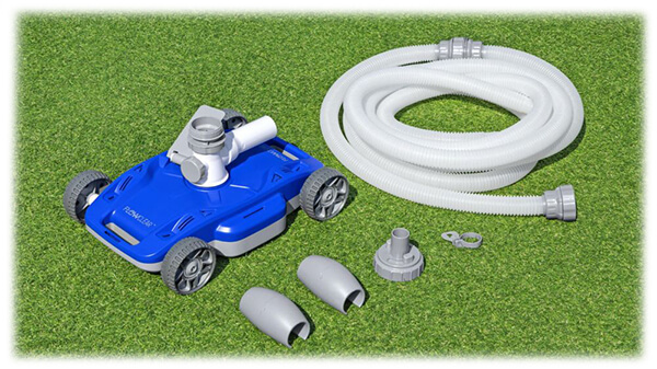 Просто подсоедините шланг очистителя к фильтрующему насосу, поместите его в бассейн, и он начнет работать. Мощность от фильтра позволит пылесосу маневрировать по дну вашего бассейна.