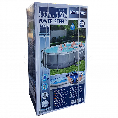 Каркасный бассейн BestWay 56620 Power Steel овальной формы отличается высокой прочностью и устойчивостью.