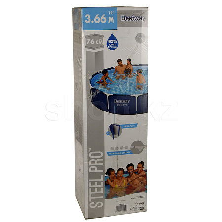 Цвет чаши бассейна снаружи синий. Каркас металлический, покрытый предотвращающим появление коррозии слоем пластика. Не требует бетонирования и подготовки ямы, все, что нужно, это плоская, горизонтальная площадка.