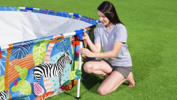 Каркасный бассейн Bestway 56985 отличается яркой расцветкой. Чаша выполнена из высококачественного трехслойного ПВХ: два слоя плотного винила и между ними сетка из полиэстера для особой прочности.