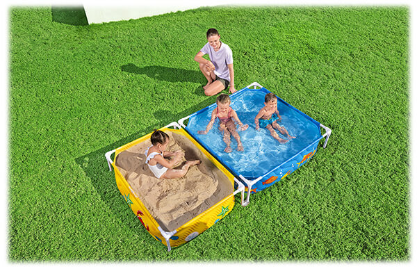 Для песочницы требуется около 200 кг песка, после чего бассейн и песочница Bestway My First Frame готовы к игре!