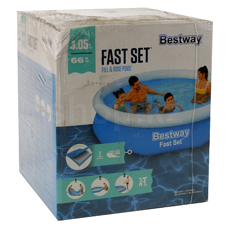 Надувной бассейн Bestway Fast Set 57456 отличается простотой и легкостью. Стенки бассейна, выполнены из армированного ПВХ, внешний слой - полиэстер для особой прочности.