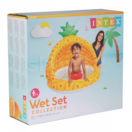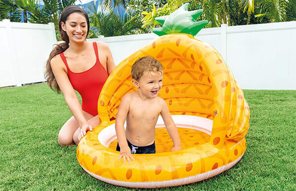 Игровой бассейн INTEX Pineapple 58414NP для малышей от 1 года с надувным дном и защитой от солнца на 45 литров.