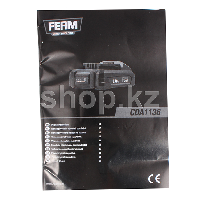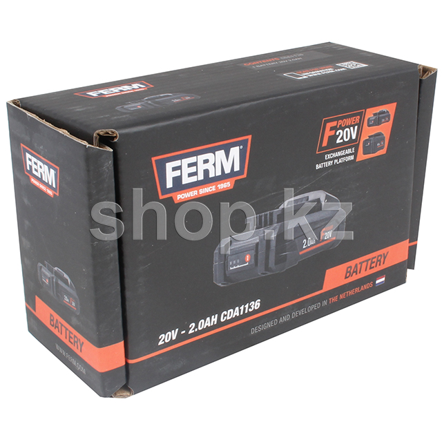 Аккумулятор Ferm CDA1136 предназначен для аккумуляторного инструмента с напряжением 20 В. Не имеет эффекта памяти, поэтому его можно заряжать при любой степени разрядки. При хранении батареи в заряженном состоянии исключена быстрая саморазрядка.
