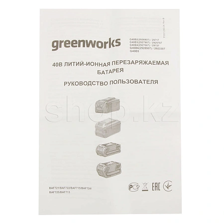Аккумулятор G-MAX 40V GREENWORKS G40B4 это литий-ионный(Li-ion) аккумулятор повышенной емкости (4 А.ч) последнего поколения, выполненный по новейшей технологии и используемый в технике GreenWorks.