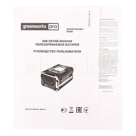 Совместимость со всеми устройствами из линейки Greenworks GD-60 60V