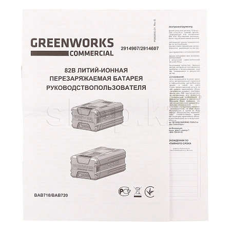 Аккумулятор 82V GREENWORKS G82B5 это литий-ионный (Li-ion) аккумулятор повышенной емкости (5 А.ч) последнего поколения, выполненный по новейшей технологии. Аккумулятор состоит из японских ячеек Sanyo и снабжается встроенной электронной схемой управления, которая предназначена для защиты от перезаряда и перегрева. Это гарантирует долгий срок службы аккумулятора - более 2000 полных циклов заряда.