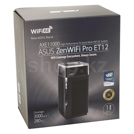 ZenWiFi Pro – ячеистая система стандарта Wi-Fi 6E, выделяющаяся высокой производительностью и привлекательным дизайном. С ее помощью вы сможете вывести рабочие и развлекательные возможности своей домашней сети на совершенно новый уровень. ET12 - это 12-поточное устройство с общей пропускной способностью до 11000 Мбит/с, что делает его идеальным выбором для высоконагруженных домашних сетей.