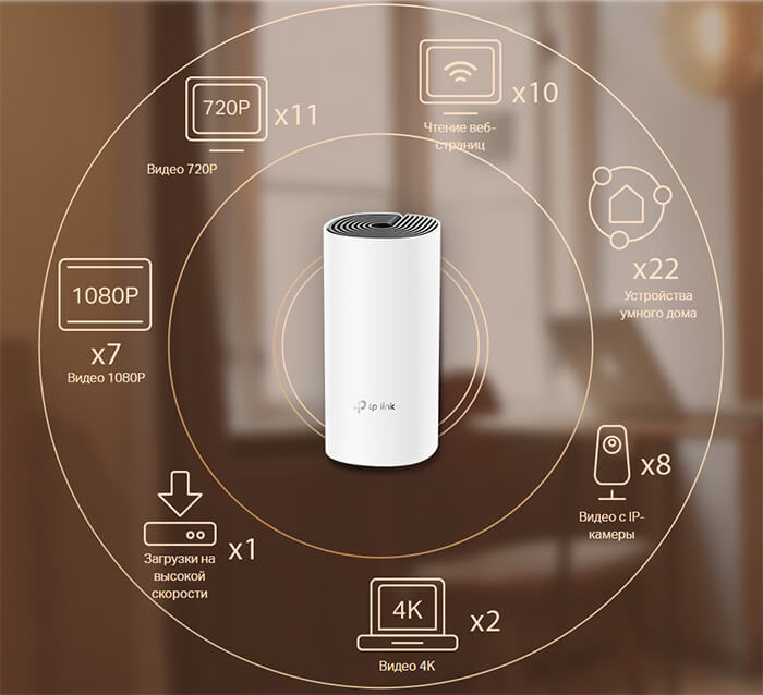 Благодаря скоростному Wi-Fi стандарту 802.11ac Deco способен обеспечить непрерывное соединение свыше 100 устройств.