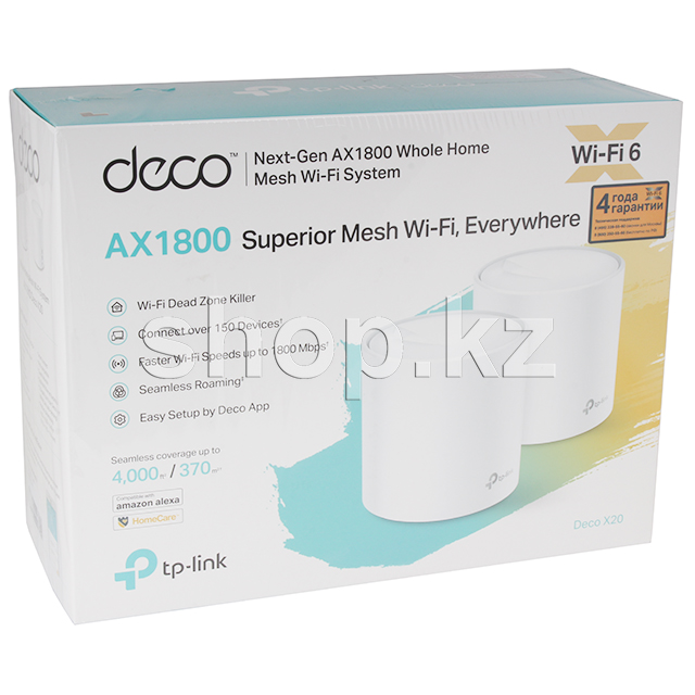 BSS Color и Beamforming позволяют Deco X20 обеспечивать мощный Wi-Fi в каждой точке дома на площади до 370 кв. м. Благодаря проводному и беспроводному подключению устройства Deco работают как единое целое для обеспечения максимально быстрого и бесшовного Wi-Fi. Нужно большее покрытие сети? Просто добавьте ещё один модуль Deco.