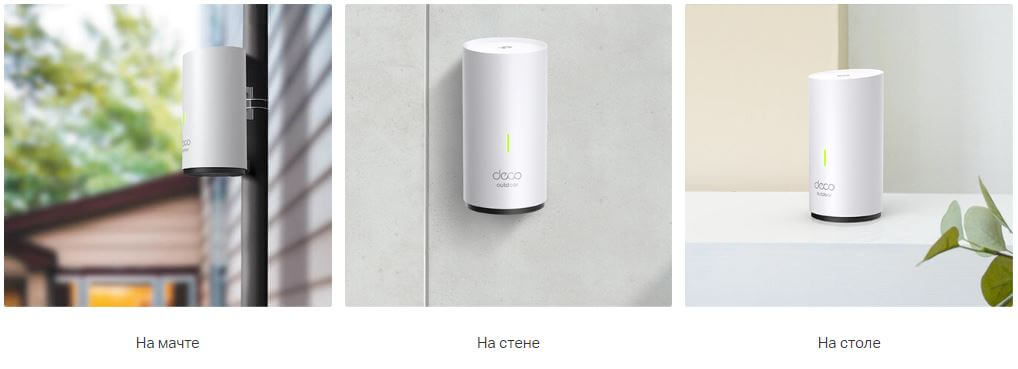 Deco X50-Outdoor можно установить на мачте, на стене или на столе — как на улице, так и в помещении.