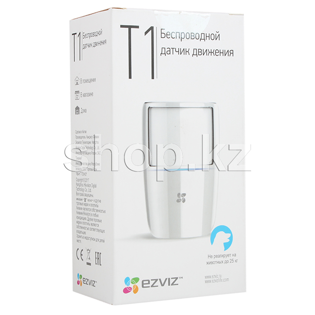 Ezviz T1 - это датчик движения с высокой чувствительностью. Он способен обнаружить движение и избежать ложных срабатываний, вызванных мелкими животными. Детектор передает информацию о тревоге концентратору сигнализации с помощью радиочастотного сигнала. Работает на батарее с возможностью зарядки.