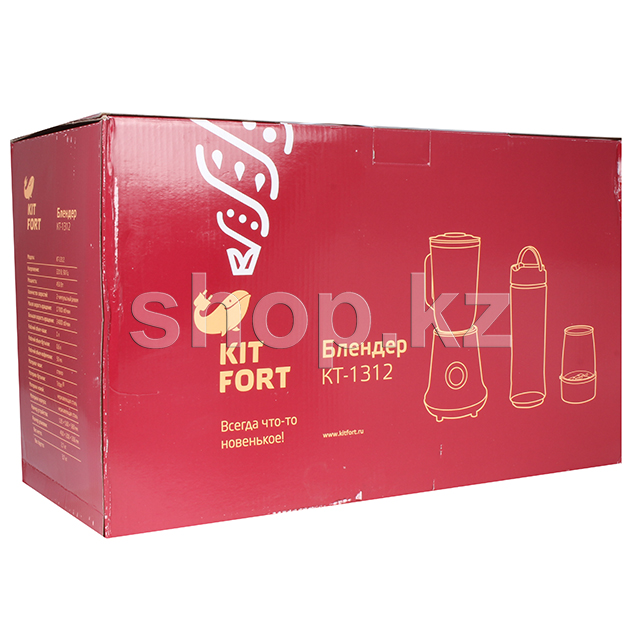 Блендер оснащен вместительной стеклянной чашей с мерной шкалой объемом 1 литр, в крышке которой есть отверстие, закрываемое колпачком, для добавления ингредиентов непосредственно во время работы.