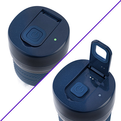 Безопасный запуск, защита от влаги Устройство запускается двойным нажатием на кнопку включения. Это предотвращает случайное включение блендера в сумке, если на кнопку надавит соседний предмет. Разъём для зарядки аккумулятора защищён крышкой, чтобы лишняя влага не попадала в устройство. |