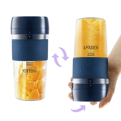 Смешает напиток за 30 секунд! Перед приготовлением смузи, все используемые ингредиенты порежьте на небольшие кусочки, затем нажмите дважды и переверните блендер вниз, чтобы лезвия устройства смогли перемешать коктейль. |