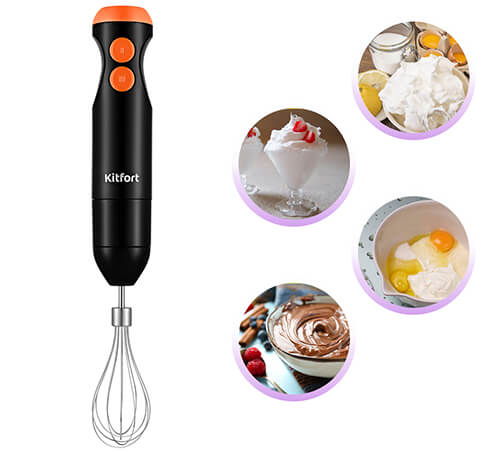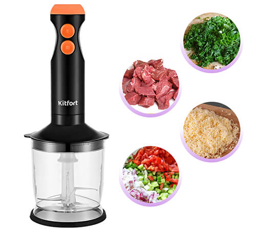 Прибор Kitfort КТ-3041 может выполнять функции измельчителя, погружного блендера, а также в комплекте есть венчик для взбивания. С помощью измельчителя можно быстро измельчить мясо, твёрдый сыр, овощи, травы, чеснок, ягоды и многое другое на ваш вкус!