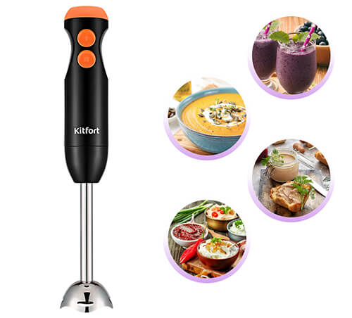 Погружной блендер предназначен для смешивания, взбивания, гомогенизации, приготовления фруктовых и фитнес-напитков, супов-пюре, соусов, муссов, молочных коктейлей, детского питания, а также для замеса жидкого теста.