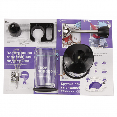 Прибор Kitfort КТ-3041 может выполнять функции измельчителя, погружного блендера, а также в комплекте есть венчик для взбивания. С помощью измельчителя можно быстро измельчить мясо, твёрдый сыр, овощи, травы, чеснок, ягоды и многое другое на ваш вкус!
