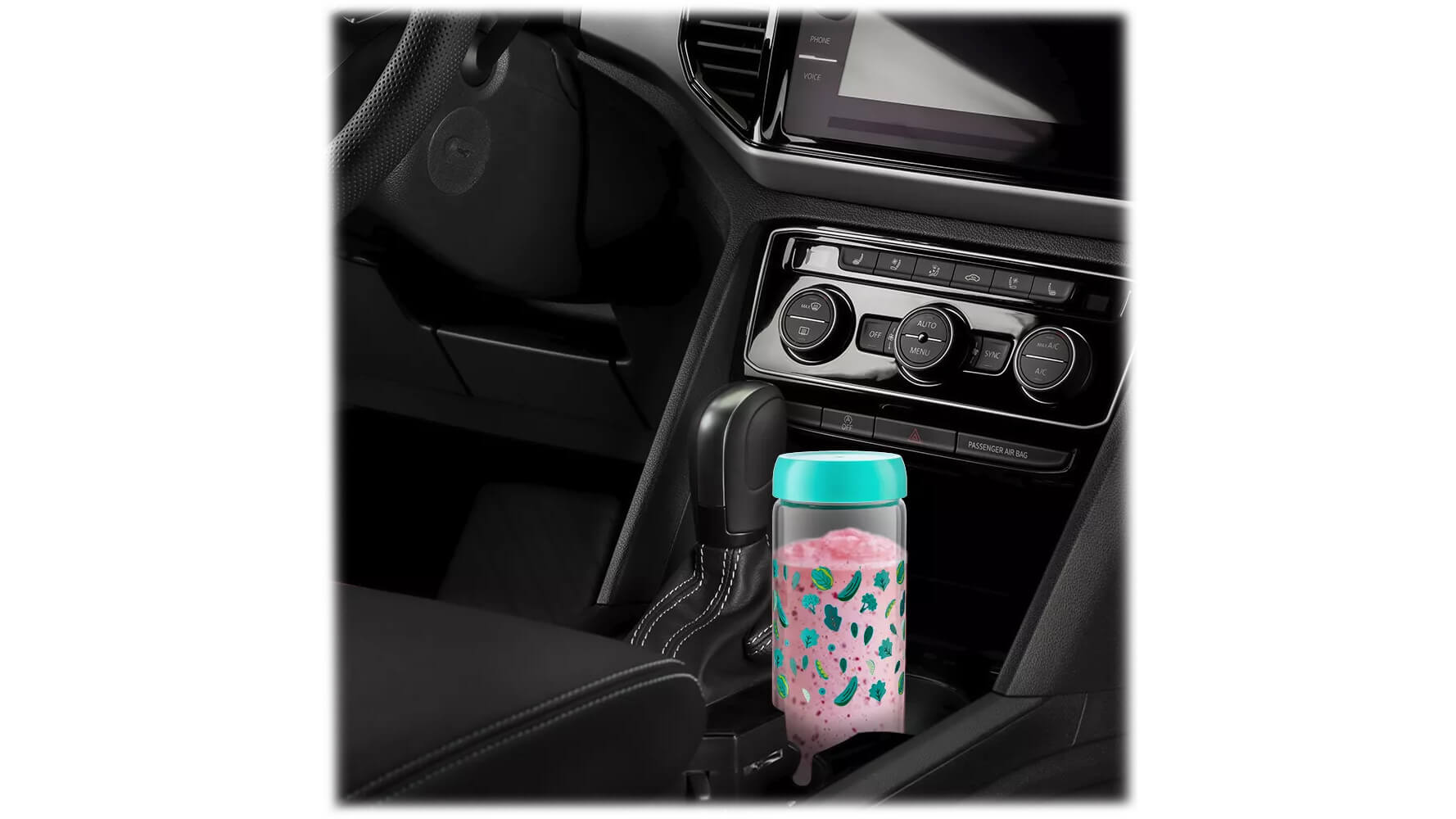Вы можете поместить бутылку со смузи в сумочку, взять с собой в спортзал или на работу. Она свободно поместится в подстаканник автомобиля.
