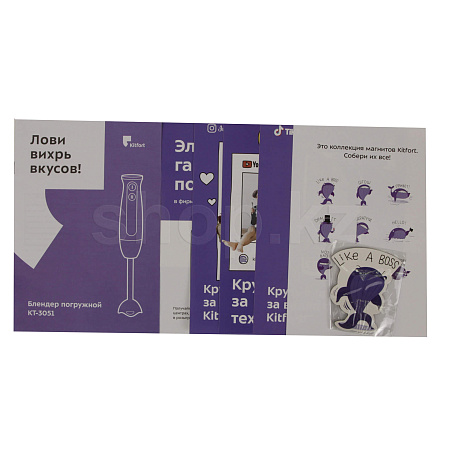 Погружной блендер Kitfort КТ-3051 предназначен для смешивания, взбивания, гомогенизации, приготовления фруктовых и фитнес-напитков, супов-пюре, соусов, муссов, молочных коктейлей, детского питания, а также для замеса жидкого теста.