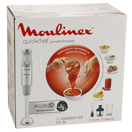 С погружным блендером Quickchef от Moulinex вы получите невероятную производительность и полный контроль благодаря мотору мощностью 800 Вт и 20 скоростям работы, которые можно регулировать прямо в процессе использования устройства с помощью интуитивного и простого переключателя.