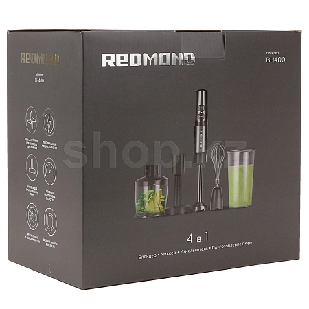 Защитная технология приостанавливает работу прибора во избежание перегрузки и перегрева двигателя. Блендер Redmond BH-400 комплектуется 4 насадками, в том числе для приготовления пюре.