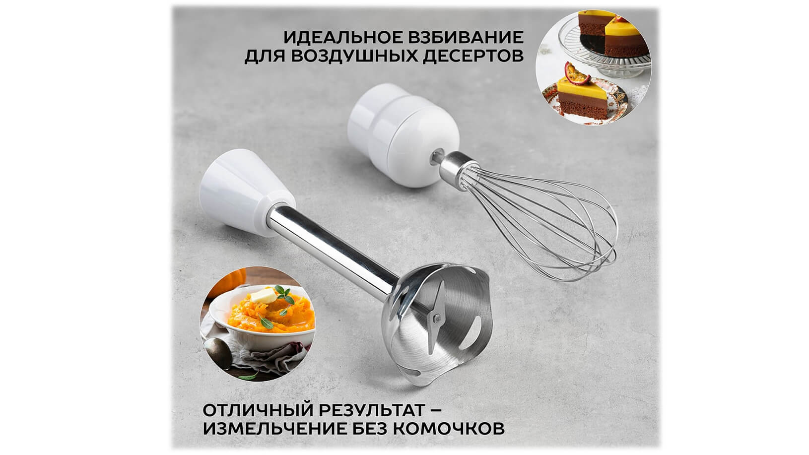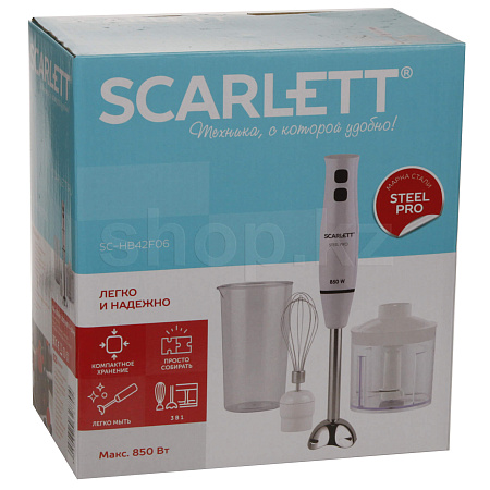 Scarlett SC-HB42F06 – погружной блендер, созданный, чтобы упростить и ускорить множество кулинарных задач. Так, модель быстро измельчит и перемешает до однородной консистенции ингредиенты крем-супов, пюре, соусов, взобьет воздушный крем из сливок и измельчает мясо и в фарш.