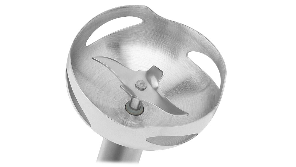 Поворотный переключатель удобно расположен на рукоятке, так что вы сможете регулировать процесс одной рукой, не прерываясь. Для точного следования рецепту Вам пригодится мерный стакан. Его объём 600 мл и Вы сможете использовать его для взбивания коктейлей. «Нога» блендера оснащена ножом MULTIEFFECT с двумя укороченными лезвиями для увеличения режущей силы.