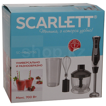 Scarlett SC-HB42F56 может заменить сразу несколько кухонных приборов. Венчик взобьет сливки, яичные белки, замешает лёгкое тесто для блинчиков. Измельчитель объемом 600 мл быстро переработает овощи в овощную зажарку, измельчит мясо или орехи.