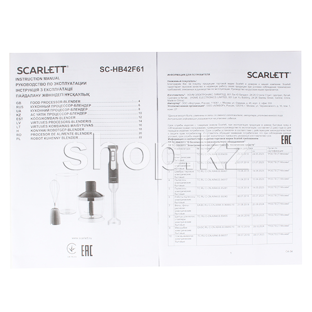 Погружной блендер Scarlett SC-HB42F61 оснащён мощным мотором высокой мощности 1100 Вт, к нему прилагается мини-измельчитель, мерный стакан и венчик, с помощью которых можно измельчать продукты, готовить тесто, взбивать крем, выполнять другие задачи.