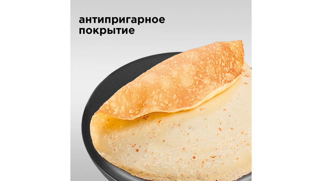 Жарочная пластина прибора стабильно поддерживает высокую температуру по всей поверхности, благодаря чему блины быстро припекаются к поверхности и равномерно готовятся и по центу блинницы и по краям.