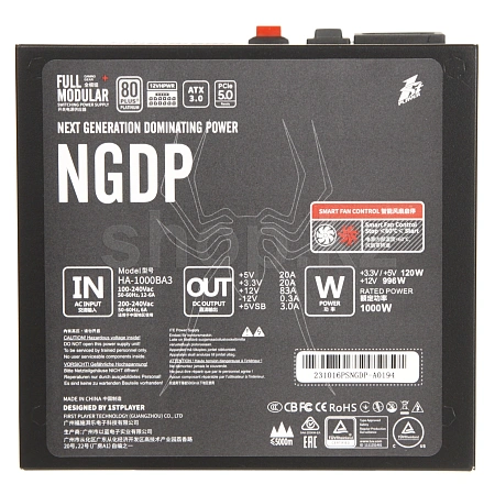 NGDP сериялы 1stplayer қуат көздері ATX 3.0 стандартына ие және қауіпсіз, тұрақты қуат көзін ұсынады. 120 мм желдеткіш төмен шу өнімділігі үшін оңтайландырылған және үйкеліс пен дірілді азайтатын және жалпы қызмет ету мерзімін ұзартатын гидродинамикалық мойынтіректермен жабдықталған. Модульдік кабельдер көрінбейді және икемді, олар жиналатын компьютердің сымдарын төсеу кезінде оңай басқарылады және жүйеде аз орын алады.