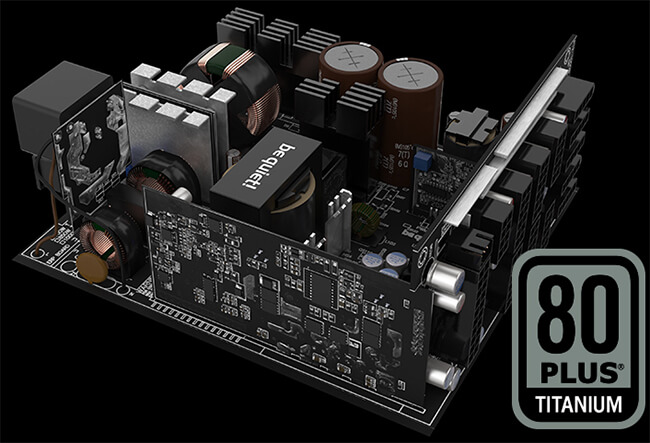 Dark Power 13 1000W имеет сертификат 80 PLUS Titanium с эффективностью преобразования энергии до 95.2%, что обеспечивает множество преимуществ для вашей системы, включая меньшую потребляемую мощность, пониженный уровень нагрева и более тихую работу. Уровень потребления энергии в режиме «Ожидания» (Standby) составляет менее 0.1 Вт.