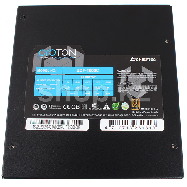 Блок питания BDF-1000C - один из 4х новейших блоков питания с модульными кабелями, что входят в серию PROTON. Достоинством данной модели является самая современная схемотехника на основе DC-DC преобразователей, с одной мощной линией +12В на выходе.