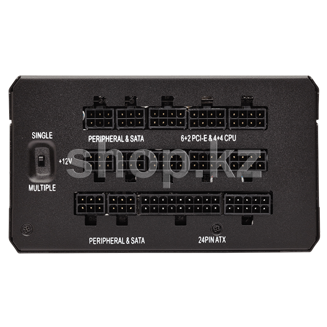 Включайте одноканальный режим +12 В или многоканальный режим +12 В. В положении «НА ОДНУ ЛИНИЮ» полная выходная мощность линии блока питания +12 В подается на все разъемы, а в положении «НА НЕСКОЛЬКО ЛИНИЙ» на каждом отдельном разъеме действует защита от превышения силы тока, поэтому на любой подключенный кабель не может быть подано больше 40 А.